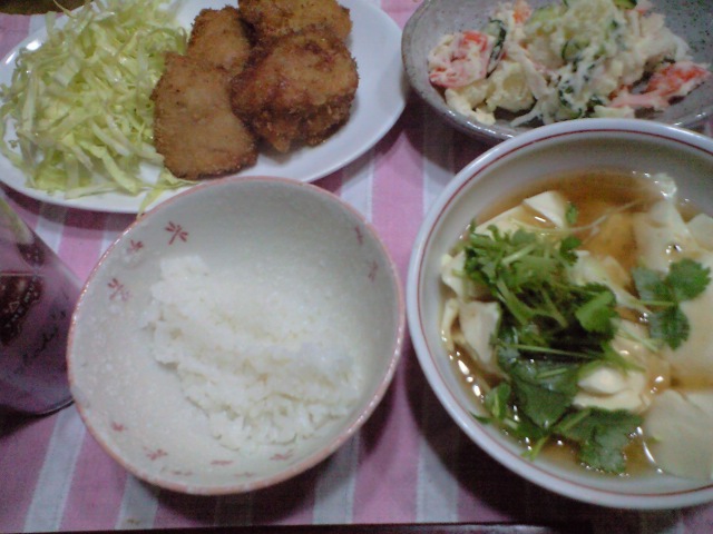 今日の夕飯は、チキンカツ、かに風味のポテトサラダ