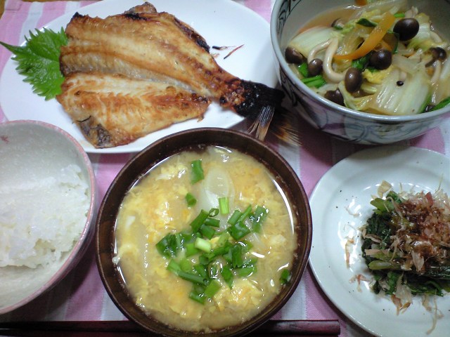 実家の母作春菊のお浸し(メニューはサラダだった)