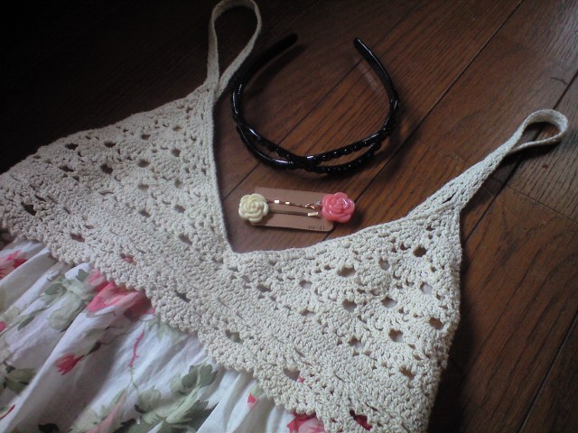 お店で買った、森ガール風ワンピースとカチューシャとヘアピン。