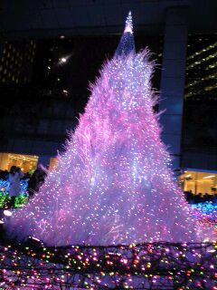 ピンクの塔も色が変化して、周りの飾りも赤と緑でクリスマスカラー。