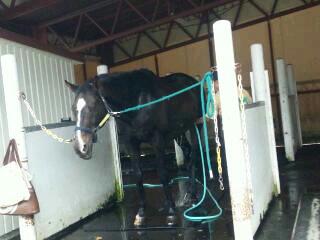 お馬さんも暑くて、顔だけでもと涼んでいるのかな