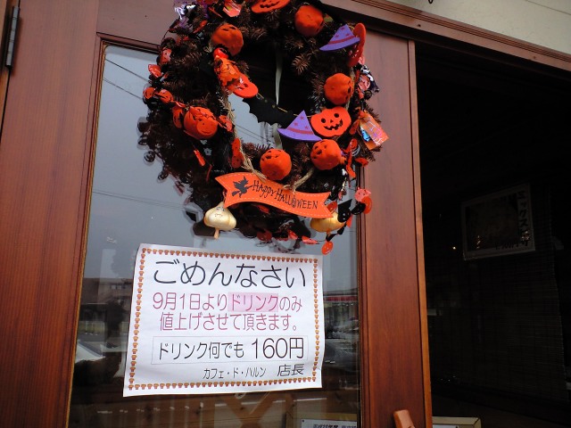 お店のマスターが、ハロウィンの飾り付けをしていました
