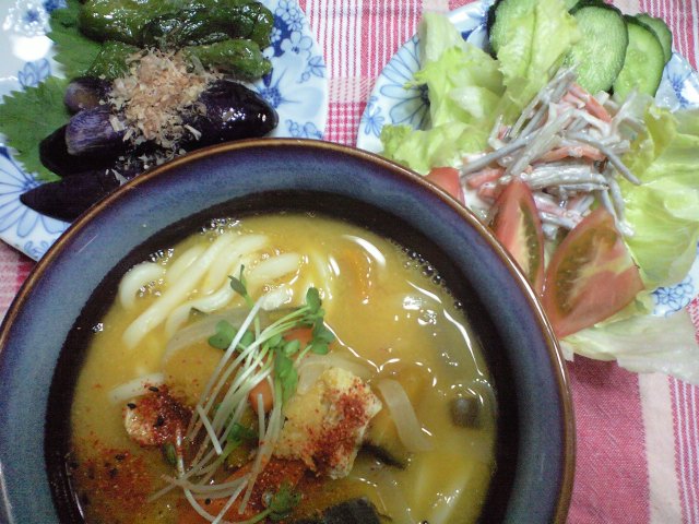とピーマンの素揚げ。こんなに暑い日にうどんにしなくてもねー(笑)