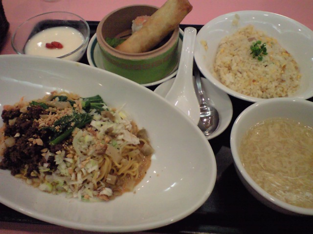 仕方ないので、西武のレストランで「汁なし坦々麺セット」