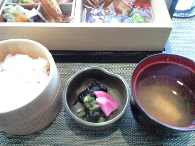 お味噌汁とお漬物のあります
