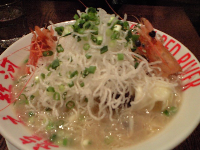 友達が頼んだ、海老と春雨を揚げたものが乗ってる麺1250円