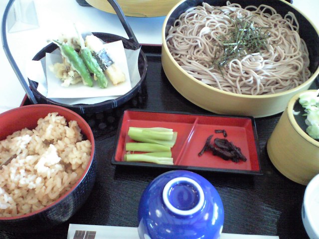 おそばの他に、天ぷらと混ぜ御飯も付いていて贅沢なんだけど
