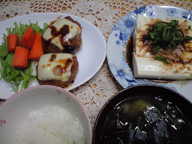 生姜をたっぷり入れて、ハンバーグの上にはチーズを乗せて・・・。
