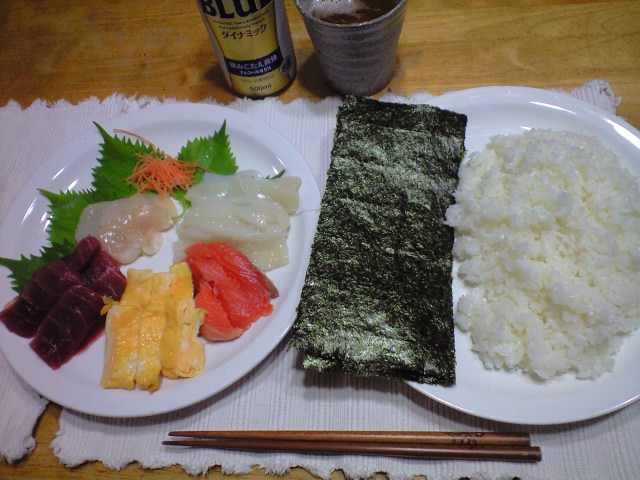 夜ご飯は簡単にと言う事で手巻き寿司