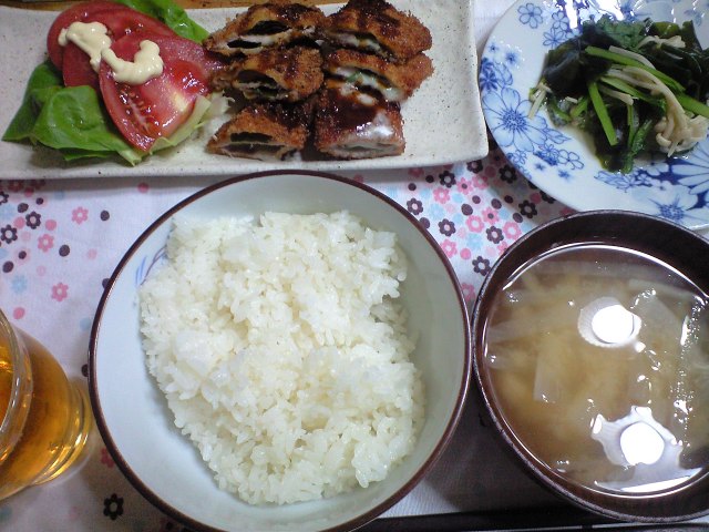 豚肉の薄切りを3層にして、間にしそとチーズを挟み揚げました。
