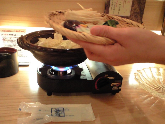 目の前で作ってくれる鍋焼きうどんて初めてだわ!