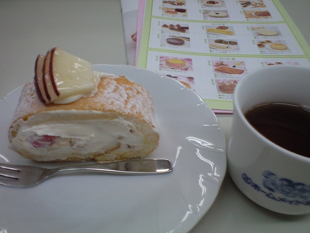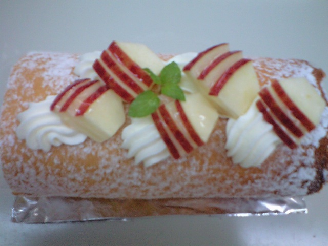 ロールケーキの中にも8分の1の大きさに切ったリンゴが入ってます