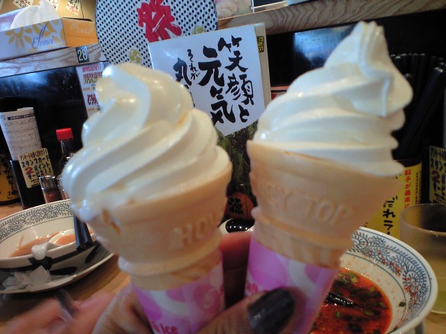 旦那さんが食べた肉そばと、あたしが食べた辛肉そば。