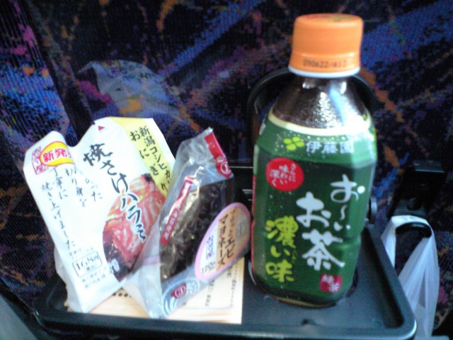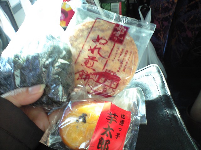 バスに戻ると、わかめと濡れせんべいのお土産をいただく。