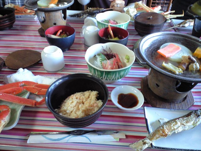 「ズワイガニ、蟹飯、甘エビ、鯛のお刺身食べ放題と
