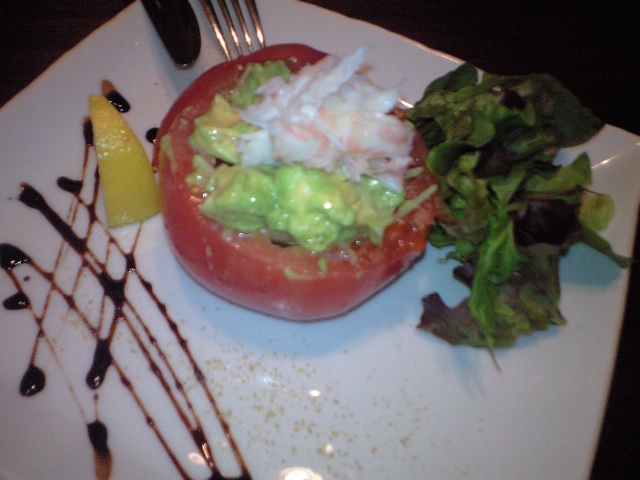 中にはアボガドとカニが入ったおしゃれなサラダ