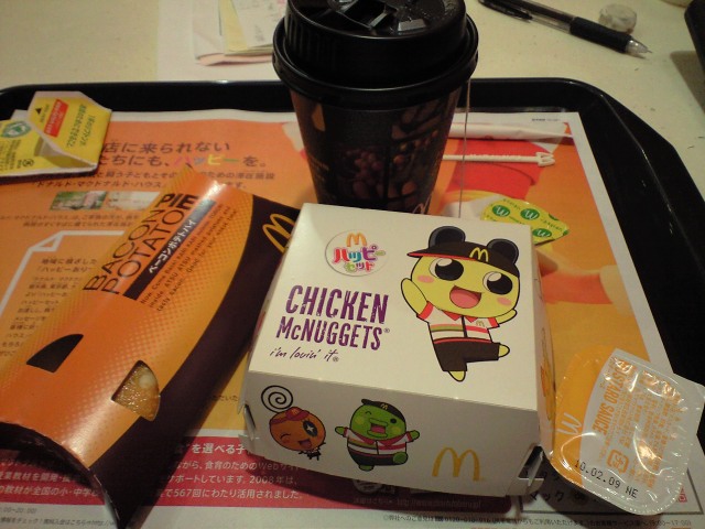 ベーコンポテトパイ&ナゲット&レモンティー。