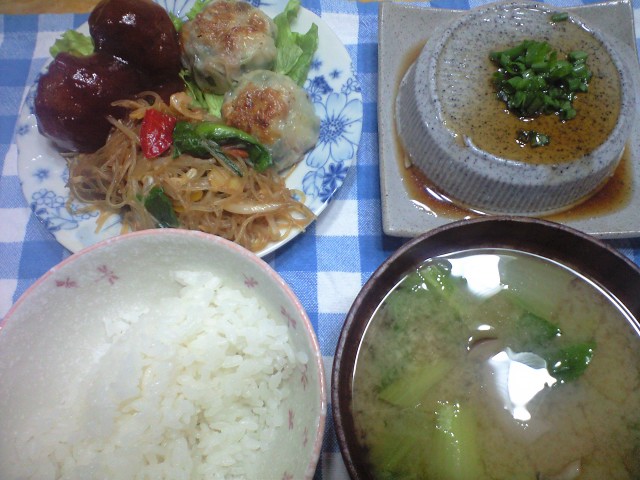 肉団子、帆立しゅうまい、ピリ辛春雨。