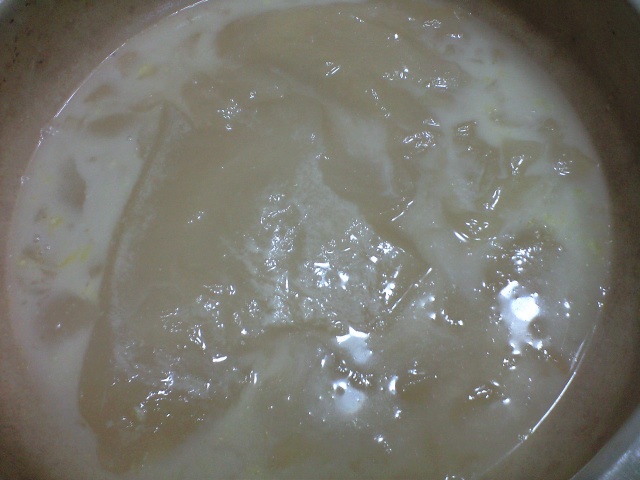 何か、コンクリートの塊のような物体は、胡麻豆腐。