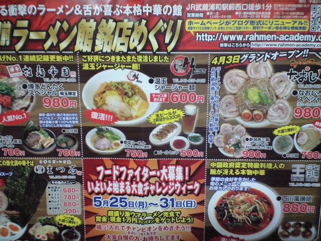 「ラーメン館銘店めぐり」のちらしが入って来たので