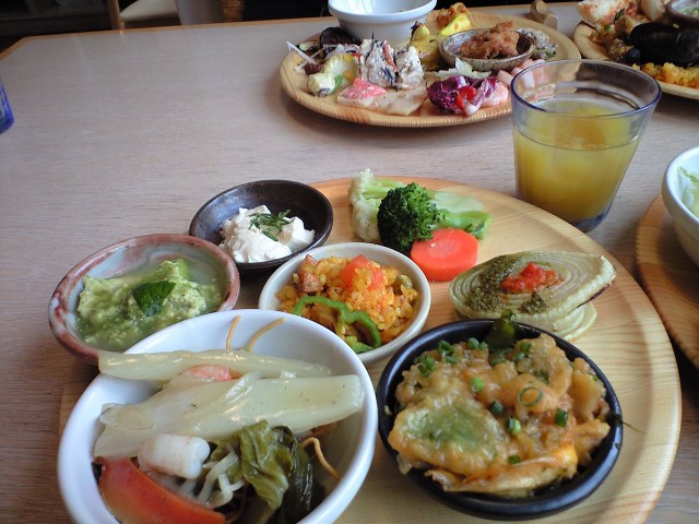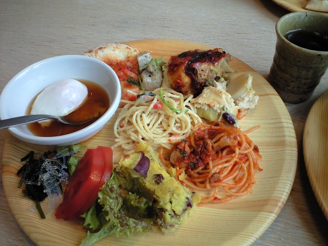 この木のトレーが自然食をアピールしてますね(笑)
