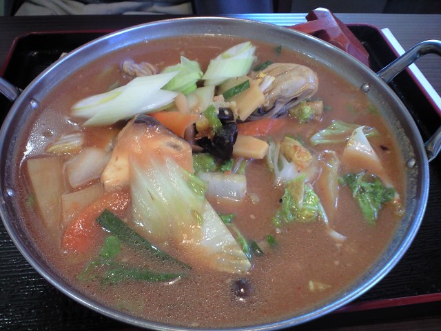 カキが入った味噌味のラーメンです。