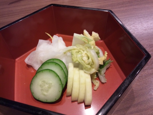 ランチを頼むとまずはお新香が出て来ます。