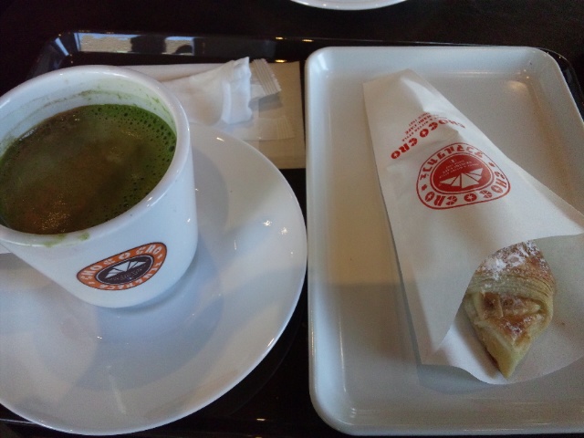 抹茶プレッソとホワイトチョコクロでまったり。