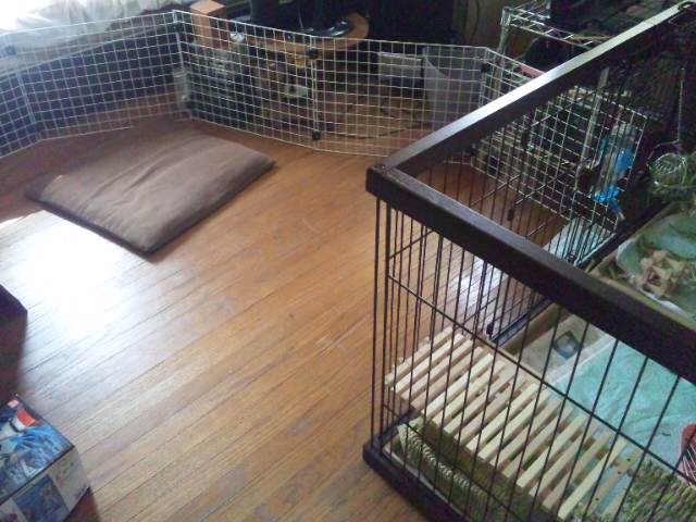 ベッドや配線がある所へは行かれないように