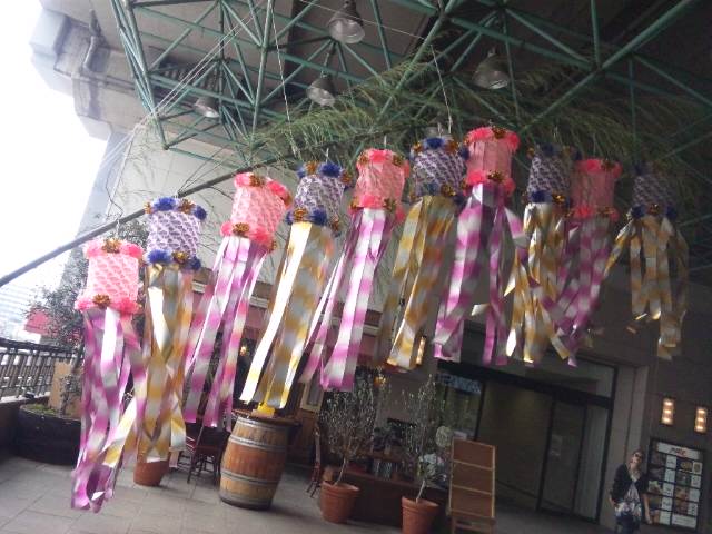 最寄駅では、七夕の飾り付けがされてました。