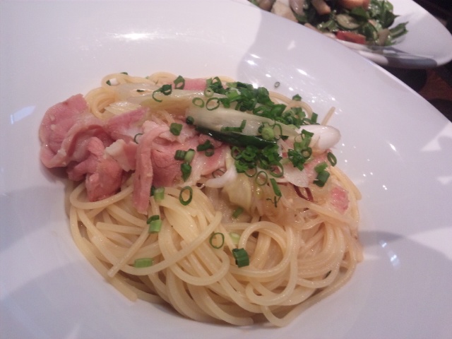 ポークと青ネギの和風パスタ。
