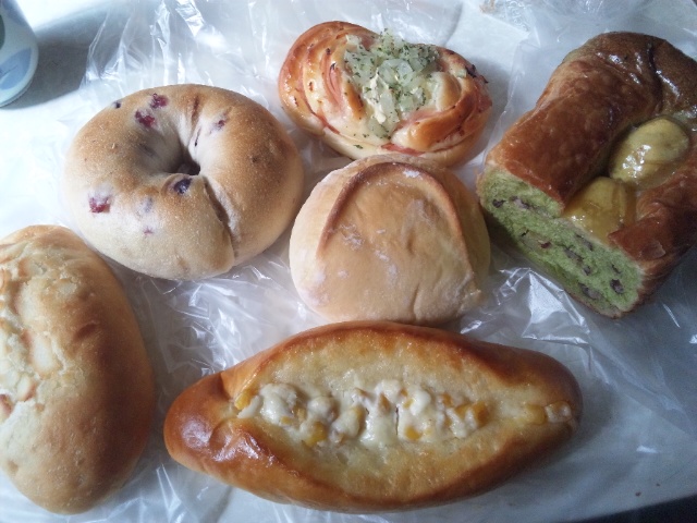 右上の抹茶が練り込まれたパンが、凄く美味しかったです。