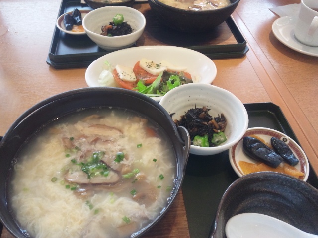 2人共ダイエッターなので、きのこの雑炊でヘルシーランチです