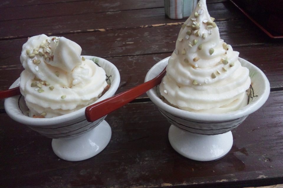 ソフトクリームにも蕎麦粉が混じっているのかな?