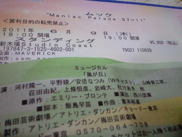 ムックの日ライブと、嵐が丘のチケットを発券して来たんだけど・・・・