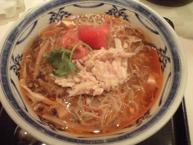 これは、蒸し鶏と豆腐のサンラー麺。