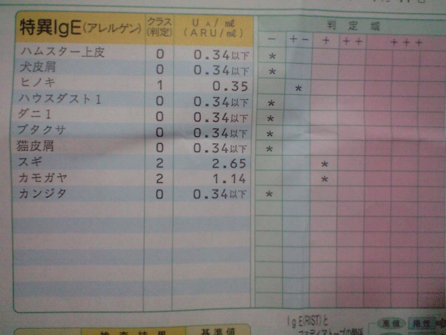 アレルギー検査の結果を見ると、やっぱりスギに一番反応はしてる。