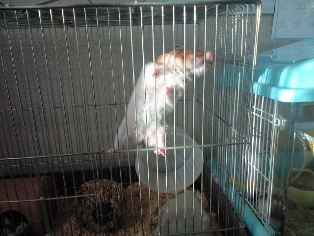 ケージの入口も歯で開けようとするから紐で縛ってます。