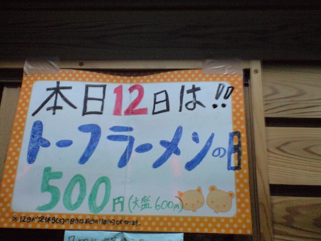 12日は、600円のトーフラーメンが500円になります。