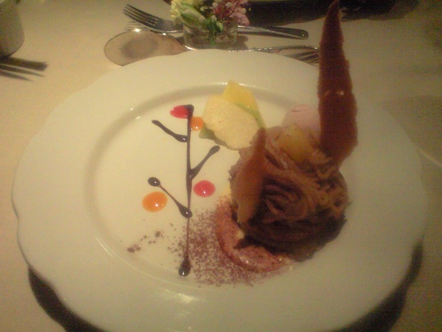 アイスとモンブランとフルーツの盛り合わせ。