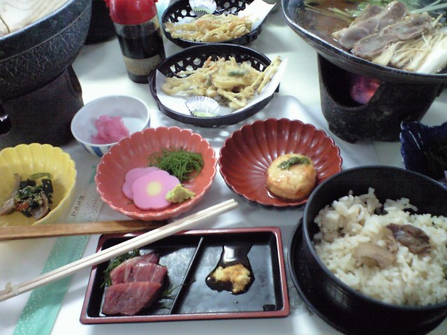 昇仙峡近くのレストランで食べた、ほうとう鍋と松茸ごはん。
