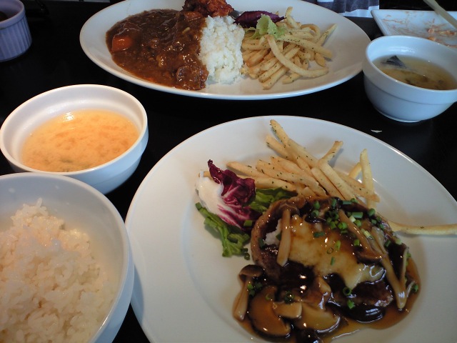 和風ハンバーグと、娘のから揚げ乗せカレー。