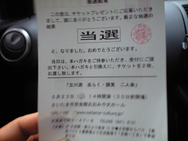 二人会のチケットが当たりました。