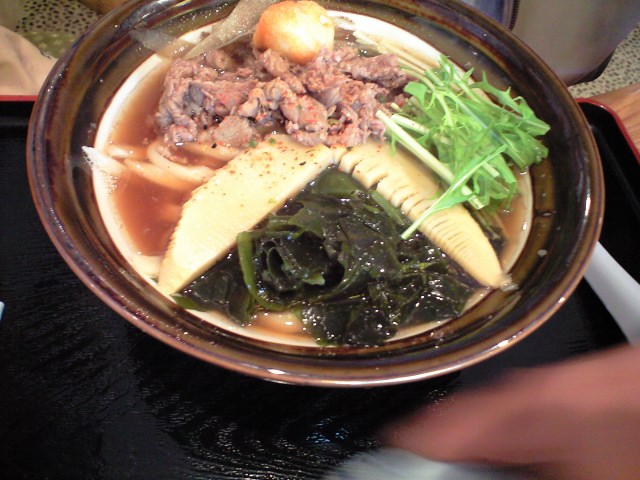 牛肉、ごぼう、わかめ、たけのこ、鶉の卵のてんぷらが