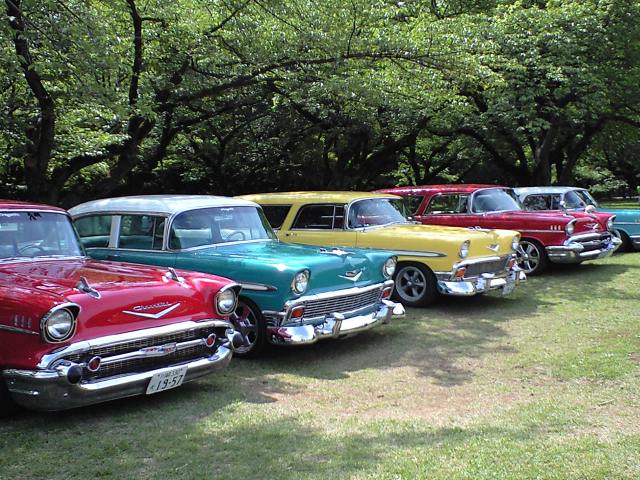 国内、海外の乗用車、軽自動車、トラックがカラフルに並べられていました。