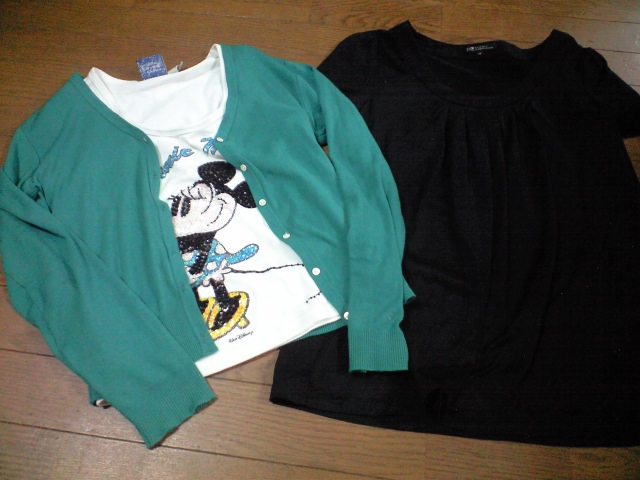 23区の黒いシャツと、色がきれいで一目ぼれしたカーディガン。