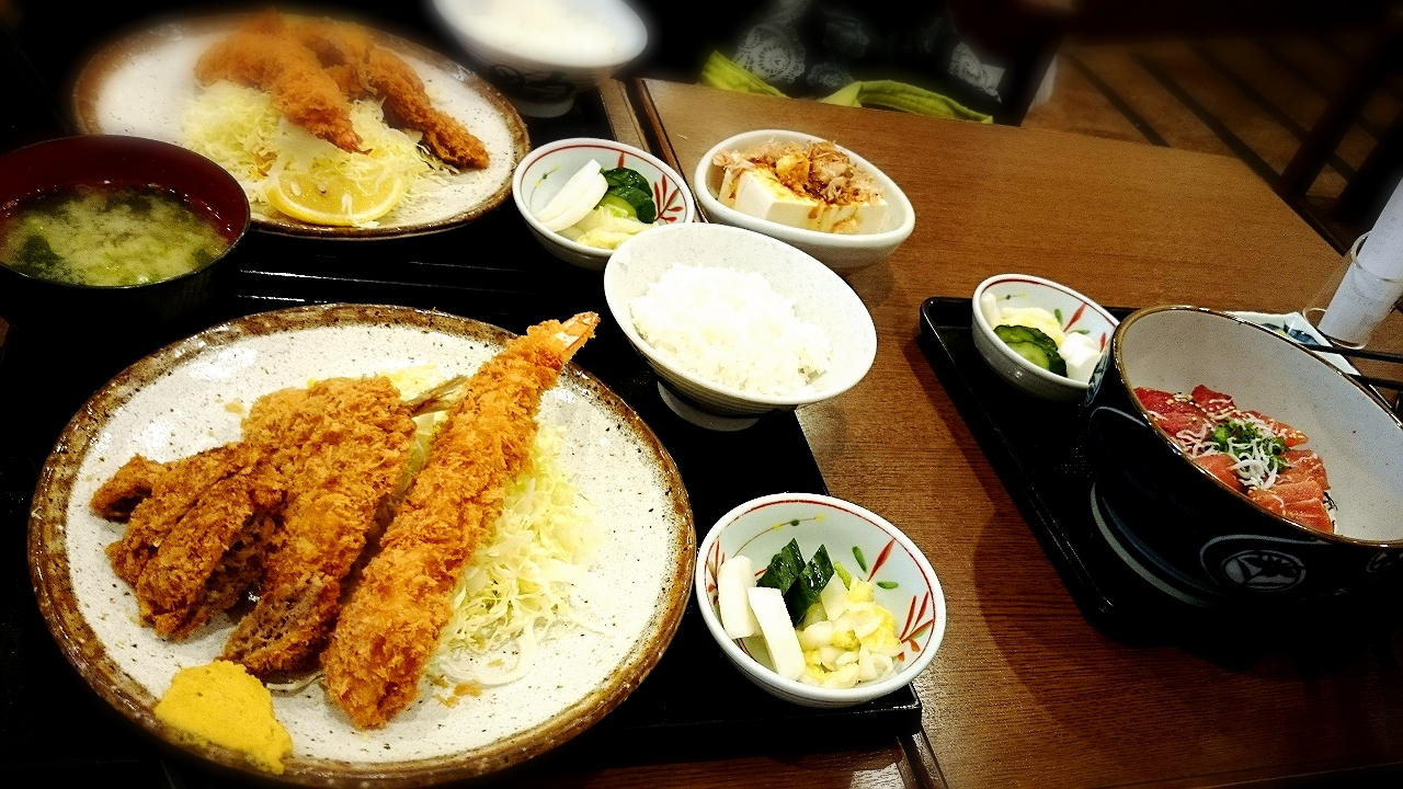 姉とあたしがミックスフライ定食。