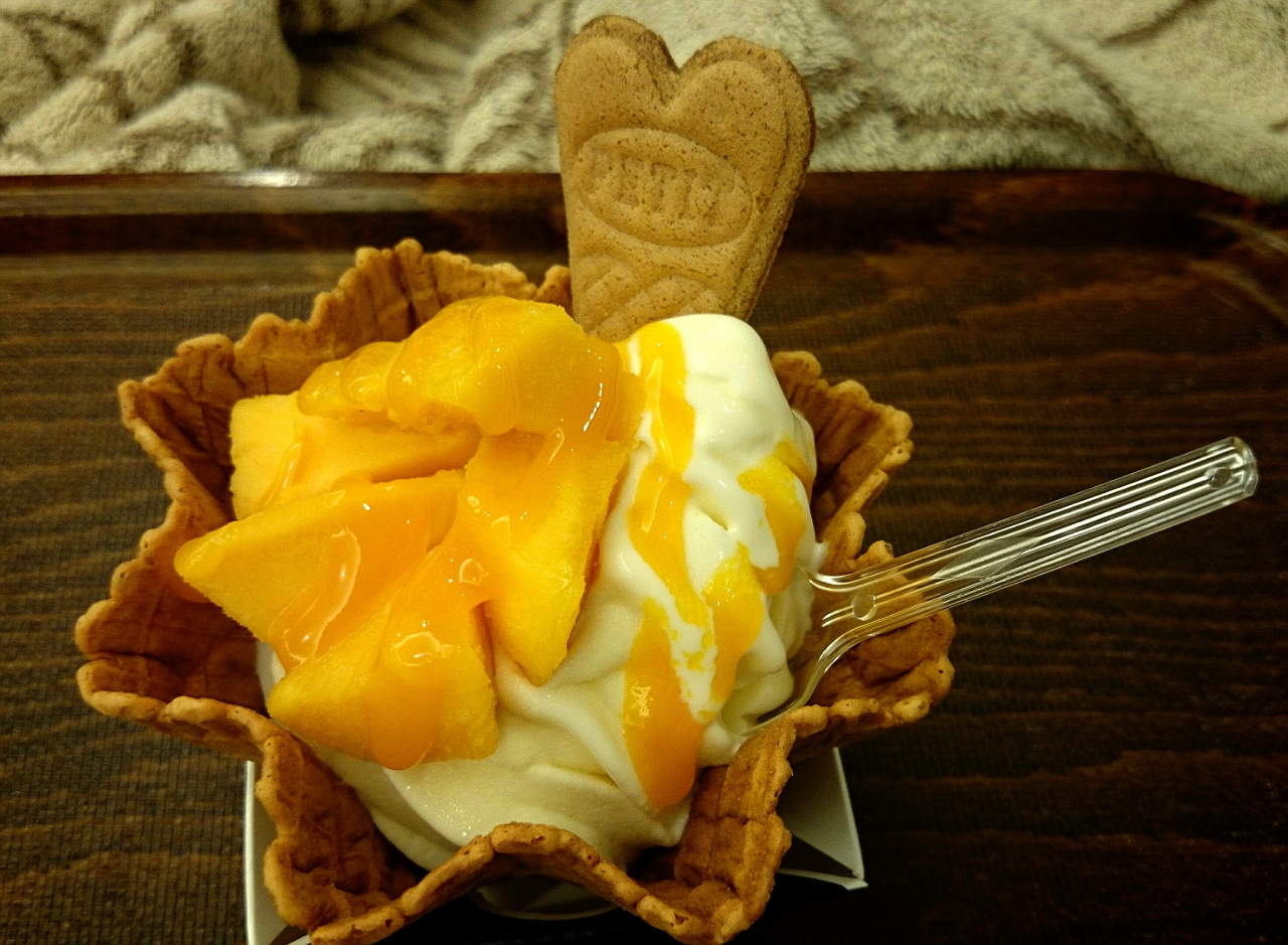 マンゴーソフト?とクリスタルガイザー。