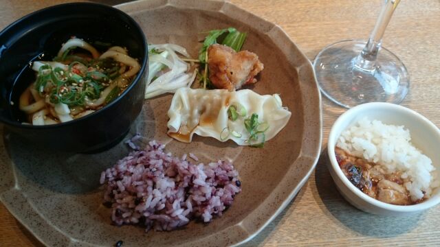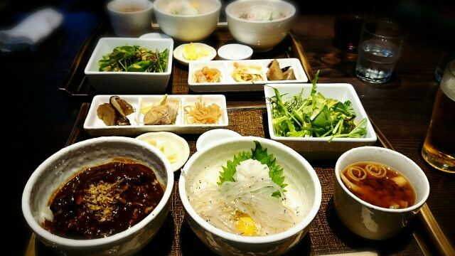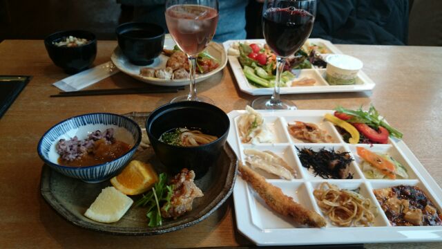 サラダ、切干とお魚とごぼうの煮物の3種付き。