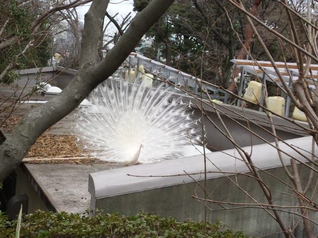 白い孔雀って初めて見ました。